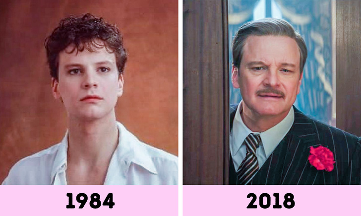 Палкий юнак з поглядом палаючим (на фото зліва) — такий був Колін Ферт у віці 24 років. Після ролі вихованця закритій британської школи для хлопчиків у фільмі «Інша країна» він прокинувся знаменитим і знявся ще в десятках картин.