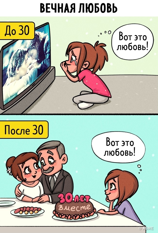 13 коміксів про те, як виглядає наша любов до і після 30 років