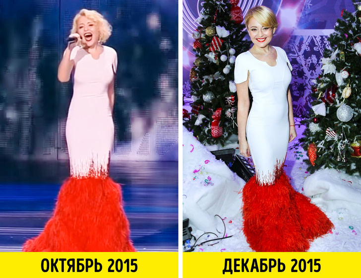 Наші співвітчизники не поступаються західним знаменитостям і не соромляться одягати речі по кілька разів. Анжеліка Варум виступала в цьому незвичайному сукню на «Новій хвилі», а вже через 2 місяці з'явилася в ньому на «Пісні року».
