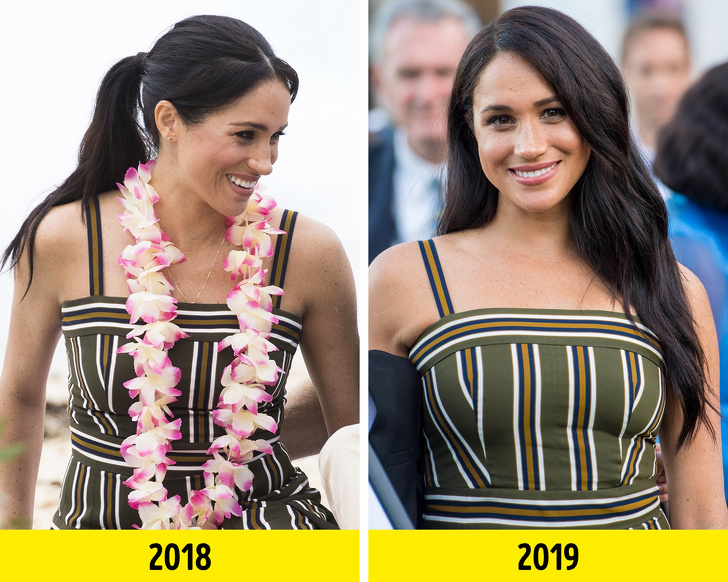 Сукня у велику смужку Меган Маркл одягала під час візиту до Сідней наприкінці 2018 року. Через рік вона знову з'явилася в ньому вже в Південній Африці.
