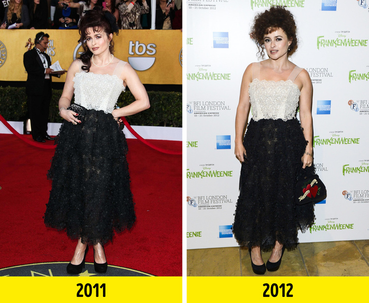 Оскільки у актриси екстравагантний смак, кожен її вихід справляє незабутнє враження і надовго запам'ятовується. Але, незважаючи на це, Хелена не соромиться надягати вбрання повторно. Так, у 2012 році на Лондонському кінофестивалі вона повторила свій минулорічний образ, змінивши лише зачіску і аксесуари.