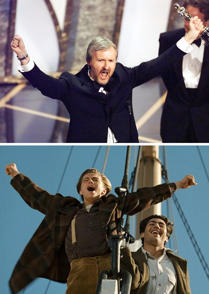 «Титанік» був головним тріумфатором «Оскара» в 1998 році. Він забрав 11 нагород, серед яких були статуетки за кращий фільм і кращого режисера. Вийшовши отримувати останню, Кемерон спочатку виголосив стандартну мова переможця з подяками, але потім не стримався і закричав: «Я король світу!» Для тих, хто забув: саме ці слова герой Леонардо Ді Капріо вигукував з корми «Титаніка» у фільмі.