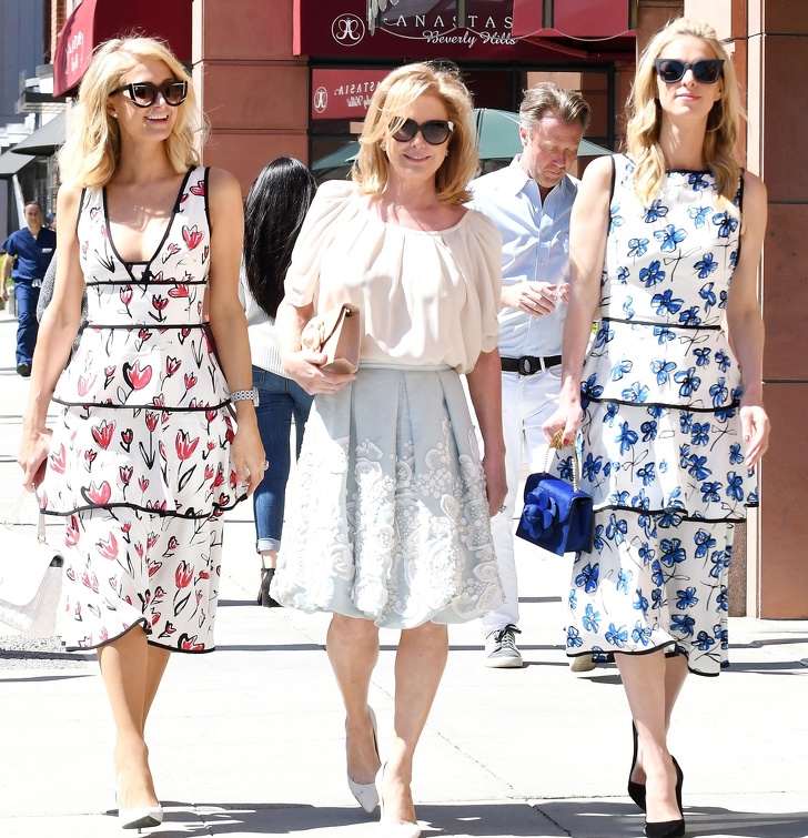 Жіночність, флористичні принти, підбори і біляві локони. Коментарі зайві: сестри Хілтон явно дотримуються одного стилю зі своєю мамою і один з одним.