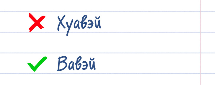 За назвою відомої китайської компанії закріпився неправильний варіант вимови, що складається з 3 складів. Але буква «h» на початку слова вимовляється, тому вірний варіант — двухсложный.