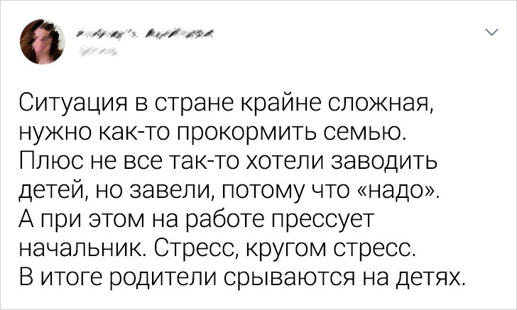 Діти — тому що вони діти, не звикли фільтрувати агресію, витікаючу від батьків. Тобто від людини, якого ми по природі сприймаємо як того, хто буде піклуватися, любити нас і підтримувати. До того ж, так як ми діти, мамині слова апріорі приймаємо за правду.