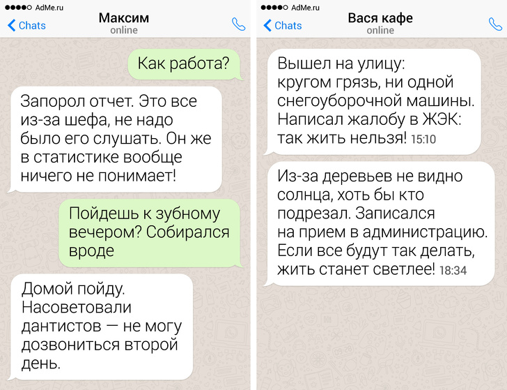 Не перетворюйте листування або стрічку новин власний варіант передачі «Час суду» або хроніку подій. Сприйняття себе як жертви обставин може говорити про пасивної агресії та егоцентризмом. Співрозмовники це чудово розуміють, тому прагнуть мінімізувати спілкування з негативно налаштованими людьми. Перед тим як виплеснути поганий настрій у месенджер, подумайте: чи сказали б ви це особисто людині? Якщо ні, швидше зітріть все, що надрукували секунду тому.