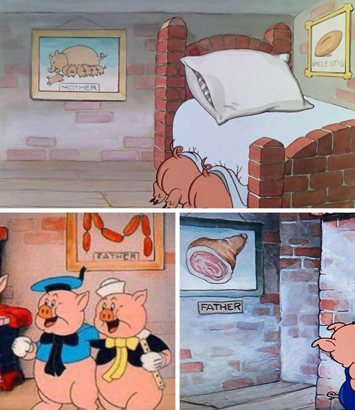 3. Творці «Трьох поросят» розвісили на стінах фотографії батьків героїв