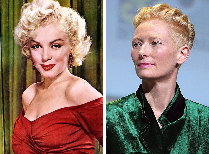 Дві яскраві актриси прославилися в різний час і різними ролями, але у них є загальний предок — Кетрін Пебенхэм. У першому шлюбі у неї з'явилася дочка, яка стала прабабусею Мерилін Монро, а в другому — син, одним з нащадків якого є Тільда Суінтон.