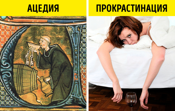 Зараз модно називати прокрастинацією небажання займатися важливими справами. У Середні століття ченці називали щось подібне ацедией. Дане специфічне стан притаманне саме цьому соціальному прошарку. Воно проявлялося у незрозумілої туги, апатії та небажання служити Богу. Вважалося, що цією недугою можуть заразити демони і це може призвести до летального результату.