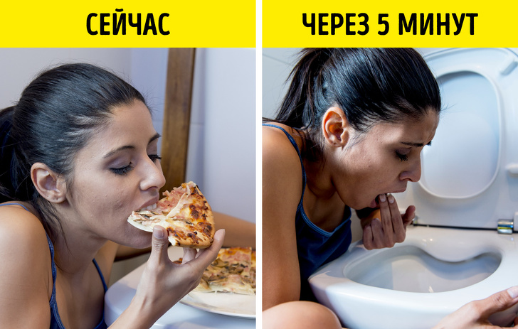 При булімії людина втрачає над собою контроль і поглинає їжу величезними порціями, а потім намагається позбутися від їжі: приймає проносні або сечогінні препарати, викликає блювоту і посилено займається спортом. Якщо напади переїдання спостерігаються не рідше 2 разів на тиждень протягом 3-4 місяців, то потрібно звернутися за допомогою до фахівця.