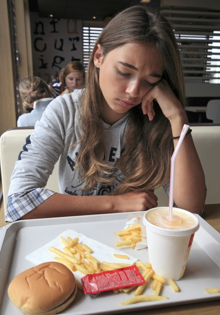 - Відсутня культура харчування: людина може повечеряти, випити чай, потім з'їсти солоний огірок і знову переключитися на солодке.