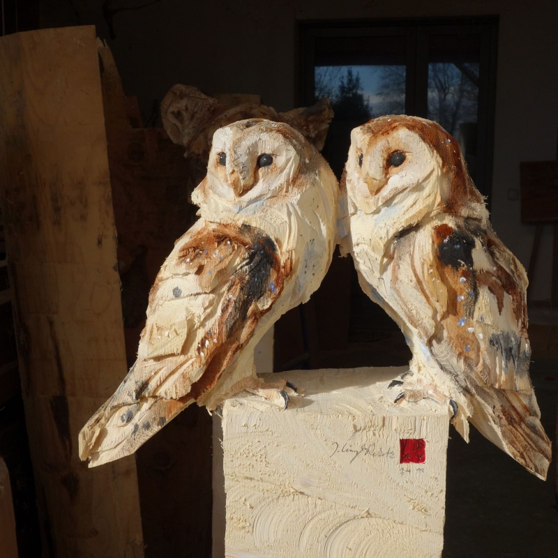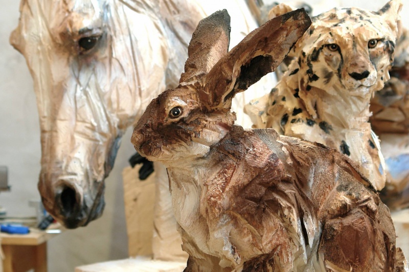 Скульптор з Німеччини Юрген Лінгл-Ребетез (Jürgen Lingl-Rebetez) починав як живописець, але з часом став працювати з деревиною і перетворився в справжнього майстра по дереву. Його брутальні роботи, зроблені за допомогою бензопили, одночасно грубі і наповнені легкістю і динамікою: здається, ось-ось герої зроблять стрибок на глядача. Штрихи фарбами додають персонажам тваринної сили та експресії.