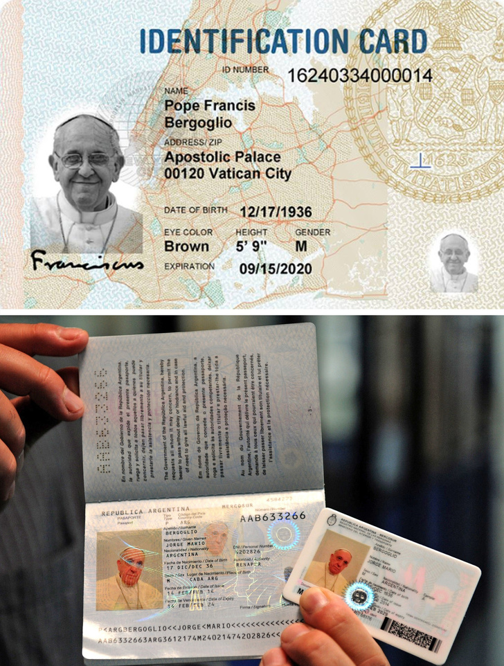 Громадянство Ватикану видається Державним секретаріатом. Паспорт № 1 (на фотографії — ID-карта папи і аргентинський паспорт. — Прим. Social.org.ua) за традицією отримує чинний Папа Римський, який не може мати жодного іншого громадянства або підданства, крім підданства Святого Престолу. Але були й винятки: це нинішній папа Франциск, зберіг аргентинське громадянство, і Бенедикт XVI, який залишив німецьке.