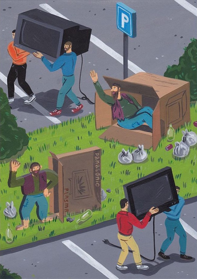 14 ілюстрацій, витягують темну сторону сучасного суспільства