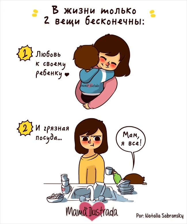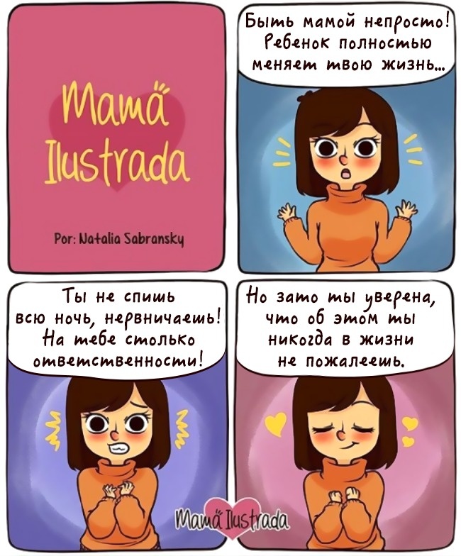 Наталія Сабрански — художник і щаслива мама. Пізнавши на собі всі радощі і труднощі материнства, вона намалювала серію правдивих коміксів про ситуаціях, які знайомі кожній мамі.