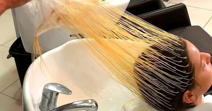 14. Так виглядають волосся, коли з них знімають шапочку для мелірування