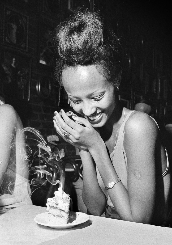 Іман святкує свій 21-й день народження в одному з ресторанів Нью-Йорка, 1976 рік.
