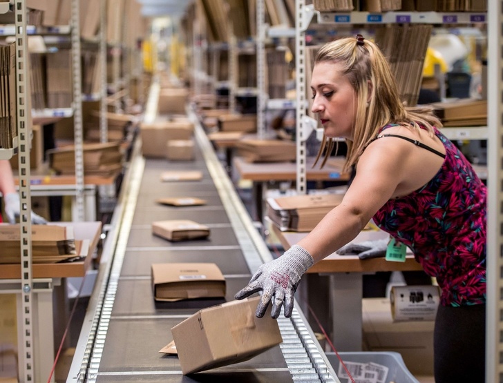 Amazon – світовий онлайн-ритейлер, який продає, упаковує і доставляє мільярди замовлень в рік. Щоб виконати такий обсяг роботи, службовця кожного складу треба працювати швидко, а в періоди свят і розпродажів – ще швидше. Згідно з даними Mirror, на упаковку 1 посилки дається 30 секунд. Для початківця працівника встановлюється план на рівні 120 посилок в годину, з часом він збільшується до 200.