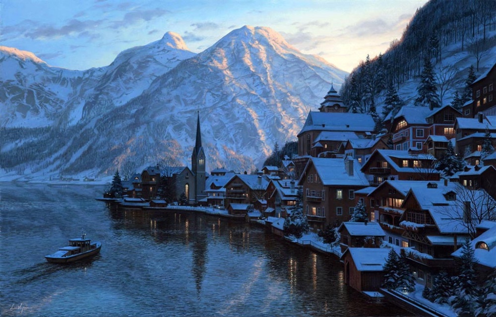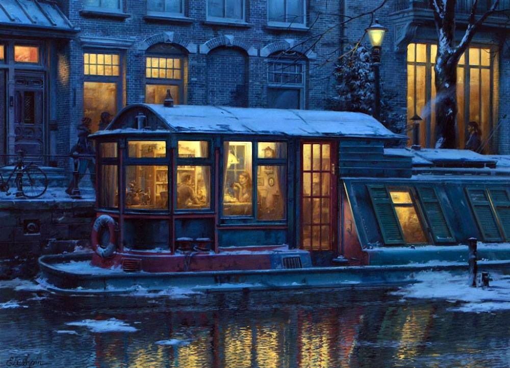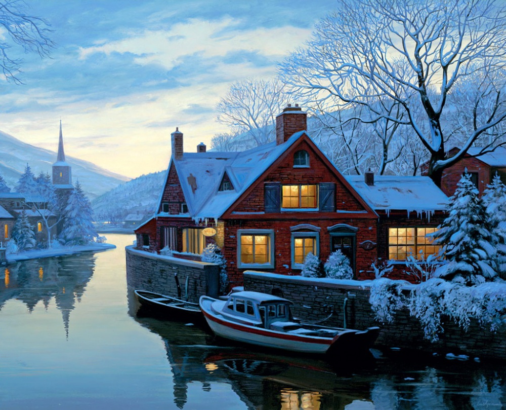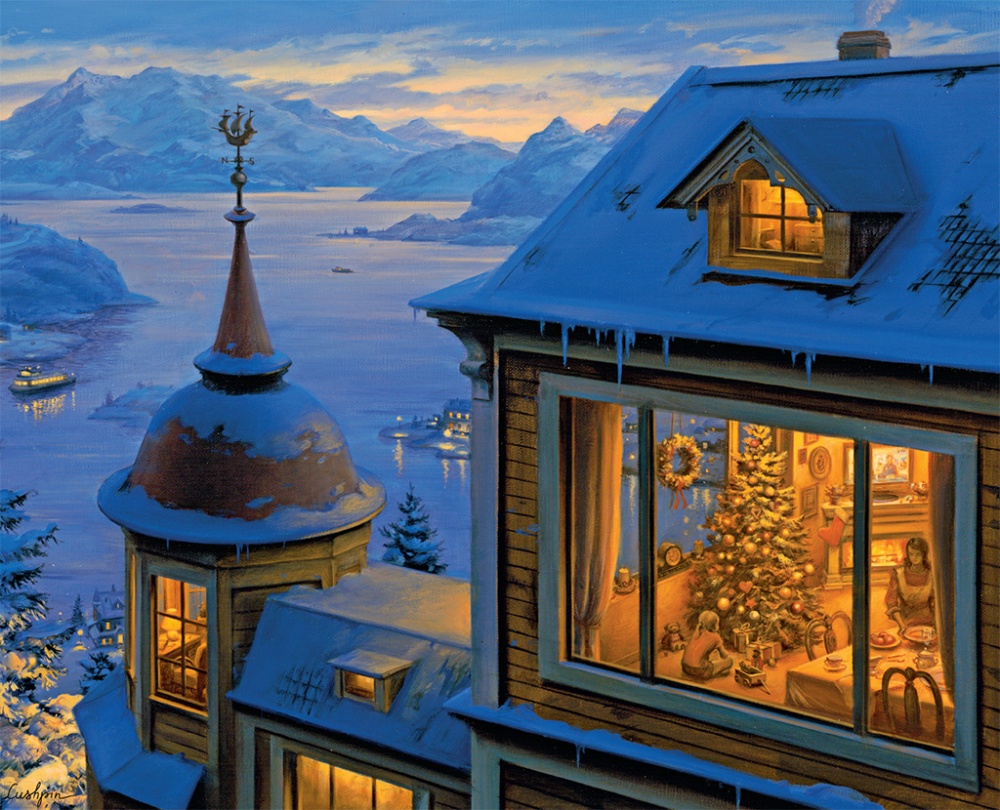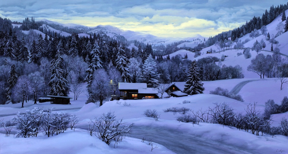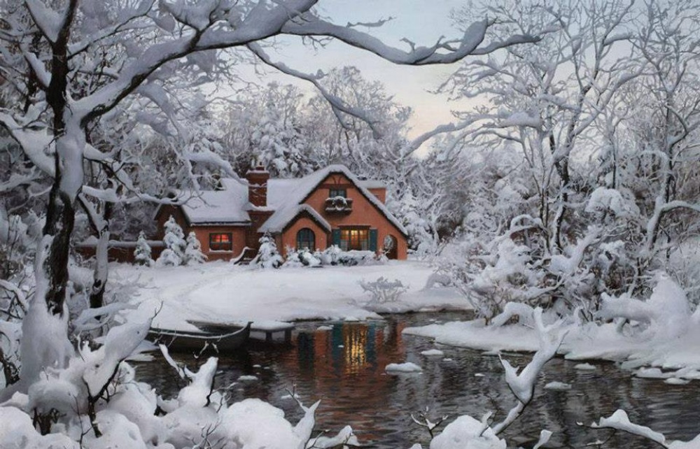 Художник Євген Лушпин показує всі пишність цього часу року з іншого ракурсу: дивлячись на зимові пейзажі в його роботах, відчуваєш неймовірне тепло і затишок. Ці картини просто зачаровують своїм чаклунством!