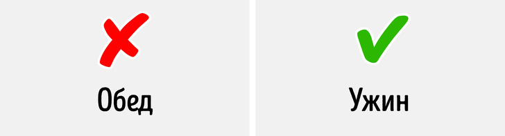 Dinner — це не обід, а вечеря, незважаючи на те, що наша шкільна програма може запевняти вас у зворотному. Будьте грамотні і не піддавайтеся на цю провокацію!