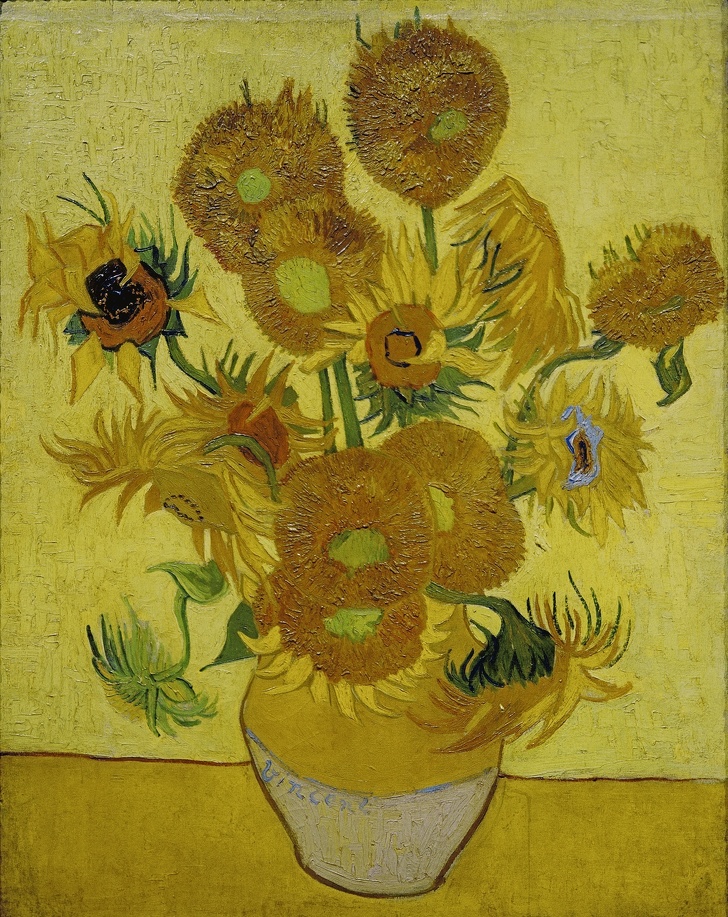 Багато вважають, що знаменита картина з соняшниками — одна-єдина. Але це не так. Насправді їх 6: 2 з лежачими соняшниками і 4 зі стоять у вазі, які були намальовані в Арлі. Одна з них знаходиться в Національній галереї в Лондоні. Вона призначалася для прикраси кімнати Поля Гогена. У роботі над цим циклом художник використовував техніку імпасто. Він наносив фарбу товстим шаром з тюбика, а потім розмазував пальцями. Таким чином художник створював рельєф картини і тривимірний ефект.