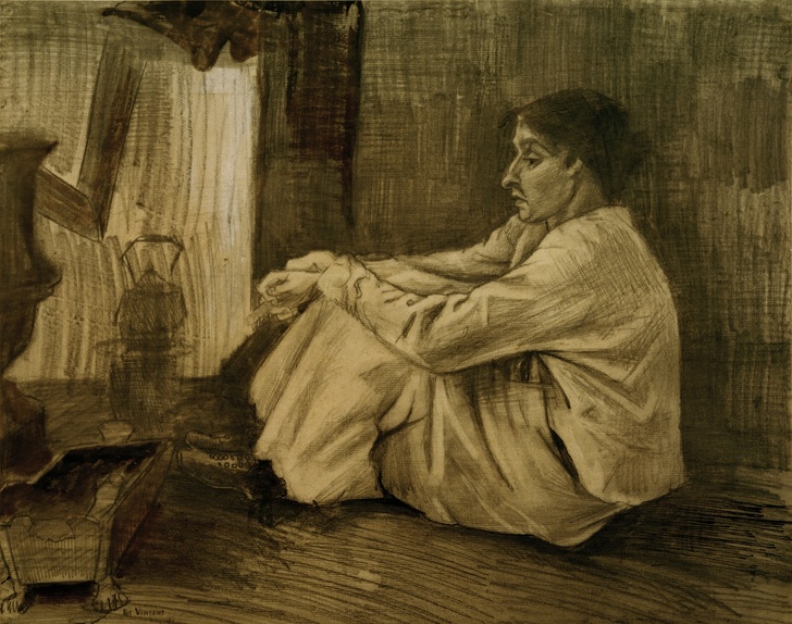 «Жінка (Сін) з сигарою, що сидить на підлозі навпроти печі», 1882 рік.