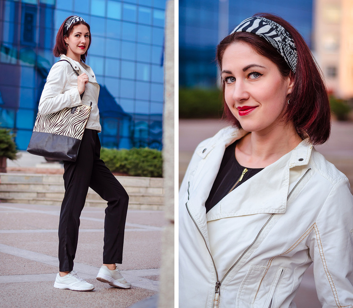 Ніна поділилася, що експеримент її «струснув» і підштовхнув до новим стилістичним вишукувань. Так, до чорного комбінезону вона додала білі кросівки, а червону косуху замінила на легку білу. Завдяки цьому вийшов повсякденний, але при цьому цікавий образ, в якому відчуваєш себе комфортно і мобільно. «Для мене весь цей експеримент — це повний вихід із зони комфорту, я навіть вперше за довгий час спробувала нову укладання. Досвід з розбором гардеробу і підбором нових образів дав мені стусана під п'яту точку», — розповіла Ніна.