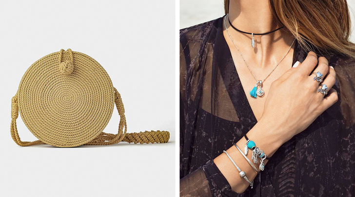 - Сумки: світла, наприклад плетені, міські рюкзаки таких кольорів, які будуть добре вписуватися в максимальну кількість образів (наприклад, молочний та бордо), клатч для виходів.