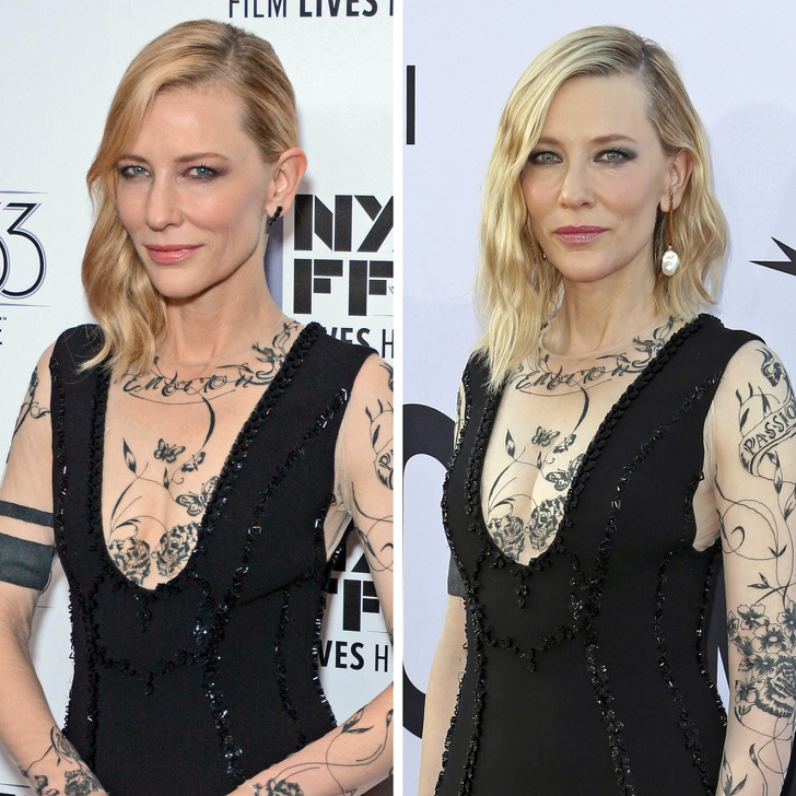 Навіть така дрібниця, як сережки, деколи грає важливу роль. У 2015 році на прем'єрному показі фільму «Керол» Кейт Бланшетт з'явилася в класичному чорному вечірньому платті з незвичайними рукавами, що імітують татуювання. Волосся з одного боку актриса прибрала, показавши всім невеликі чорні сережки, дополнившие «темний стиль». Через 3 роки актриса знову вийшла у світ в цьому вбранні. Але в цей раз великі світлі сережки у поєднанні з розпущеним волоссям блондинки «освітлили» наряд, додавши трохи романтики.