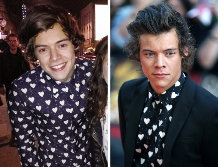 Не тільки дами можуть кілька разів виходити в світ в одному і тому ж і кожен раз при цьому приємно дивувати зовнішнім виглядом. Британський співак і учасник групи One Direction Гаррі Стайлз на вечірку на честь свого 19-річчя у 2013 році прийшов в сорочці з цікавим принтом у вигляді сердечок. Через півроку її ж він вибрав для прем'єри фільму «One Direction: Це ми», але на цей раз додавши строгий піджак.