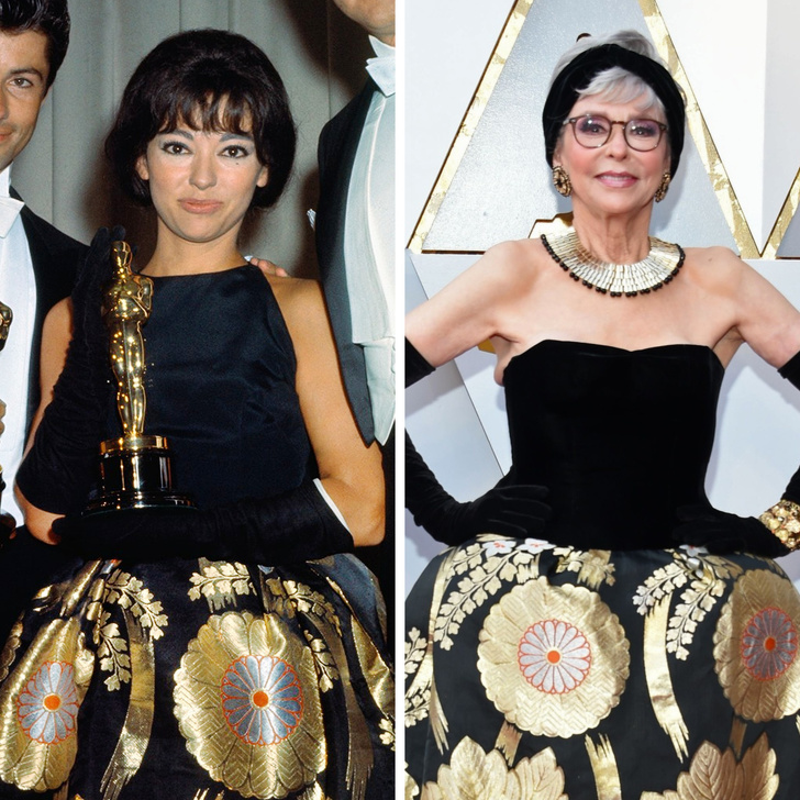 Все нове — це добре забуте старе. Це приказку знають багато, але мало хто до неї вдаються при виборі одягу. У 1962 році за своєю першою статуеткою, що підтверджує неперевершений акторський талант, Рита Морено вийшла в блискучому, як і сам «Оскар», сукню, зшиту з цього кімоно. Наряд так їй сподобався, що довгі роки діва зберігала його в своїй шафі. В 2018 році на 90-й церемонії вручення премії «Оскар» актриса знову повторила образ, трохи перешиття верхню частину плаття.