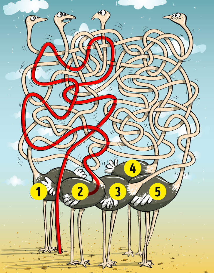 9. Визначте за 30 секунд номер страуса, заховав голову в пісок