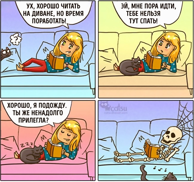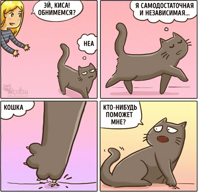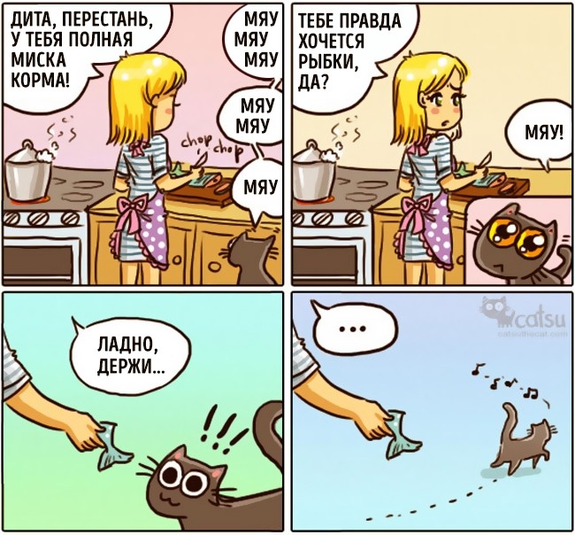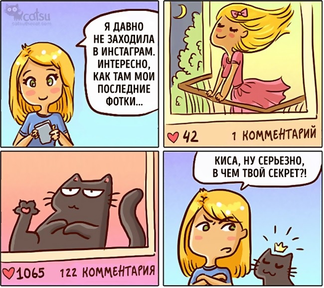 Ці забавні ілюстрації створені командою проекту Сatsuthecat.com. Над ним працює ціла сім'я з Таллінна (Естонія), а головною музою і героєм коміксів стала британська кішечка Діта. Ми в Social.org.ua не встояли перед її чарівністю.