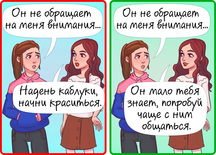 Контролювати мова доречно не тільки при офіційному спілкуванні, але і при дружньому. Втішаючи подругу або друга, не звинувачуйте в їх невдачах зовнішність, зробіть акцент на внутрішніх якостях і поведінці. Все-таки стиль одягу — це особистий вибір, який треба поважати. Він не повинен впливати на ставлення до людини, її соціальний статус.