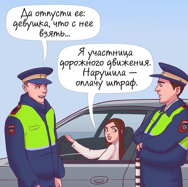 Іноді до дівчат за кермом прослизає дещо зневажливе або несерйозне ставлення. Чого варто знамените порівняння «мавпа з гранатою» або поблажки в дусі «вона дівчинка, їй можна». Однак це не говорить про те, що жінки водять гірше або не повинні відповідати, якщо порушили ПДР.