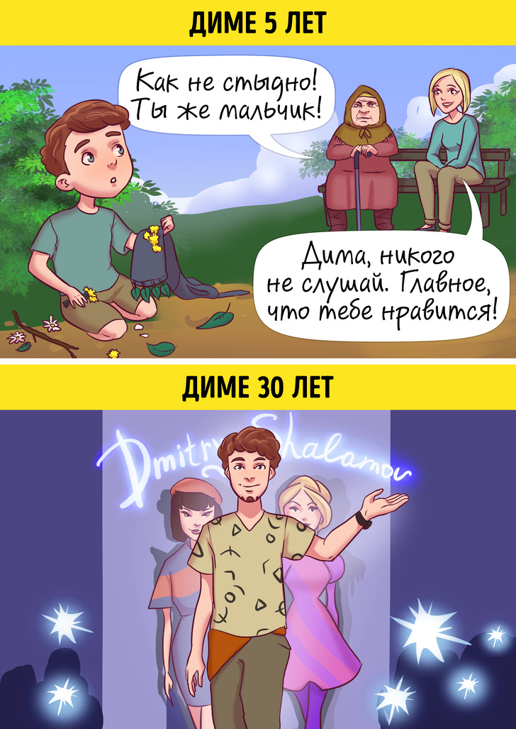 Стиль спілкування з дітьми і фрази дорослих накладають відбиток на їх подальші погляди, вчинки. Розмовляючи з дитиною, відмовтеся від стереотипних, але небезпечних виразів: «ти ж дівчинка», «хлопчики не плачуть» і т. д. Розкажіть, що немає «жіночих» і «чоловічих» сфер діяльності, але є така річ, як покликання і наявність здібностей.