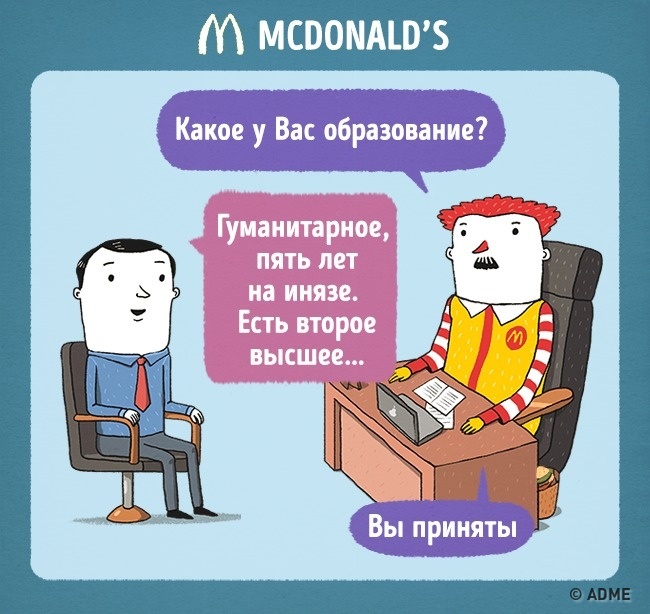 У кожної відомої компанії є свої впізнавані фішки, які стали предметом численних мемів і жартів. Редакція Social.org.ua дала волю фантазії і уявила, як би виглядали співбесіди на посади в ці місця, якщо б все це виявилося чистою правдою.