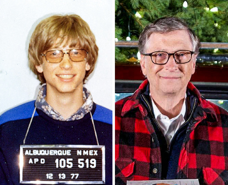 у 70-х роках Білла Гейтса двічі затримувала поліція. Обидва випадки були пов'язані з водінням без прав. В один з таких днів і було зроблено перше фото.
