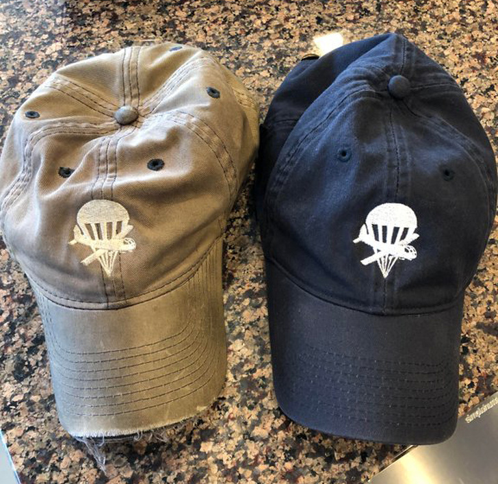 7. Важко повірити, але це дві однакові бейсболки. Ліву носили щодня (в армії та спортзалі), а праву жодного разу не надягали