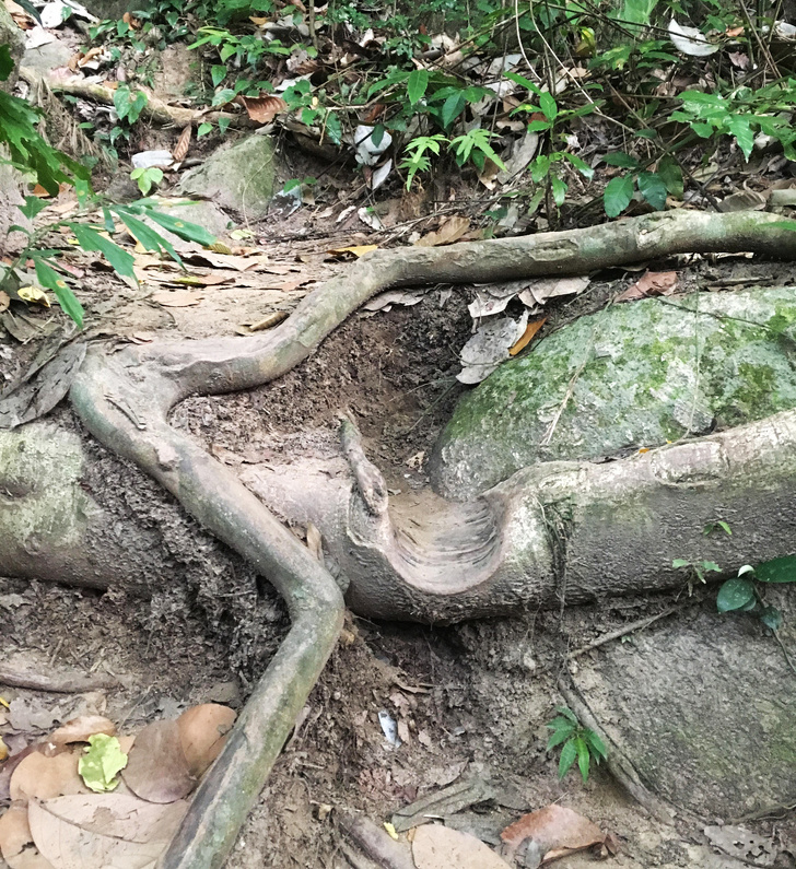 19. Піднімаючись до водоспаду, люди постійно наступали на одне і те ж місце, і в результаті в корені утворилася виїмка