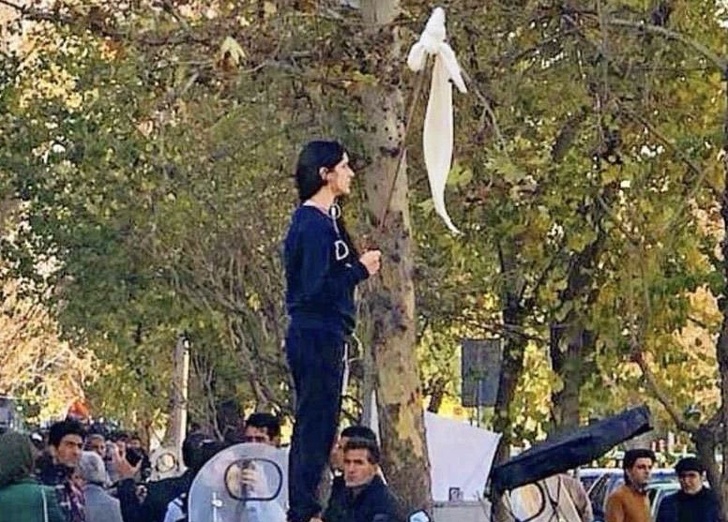 Хоробра жінка Виду Мовахед зняла свій хіджаб на одній з найжвавіших вулиць в Ірані, тим самим почавши протестний рух проти носіння хіджабу