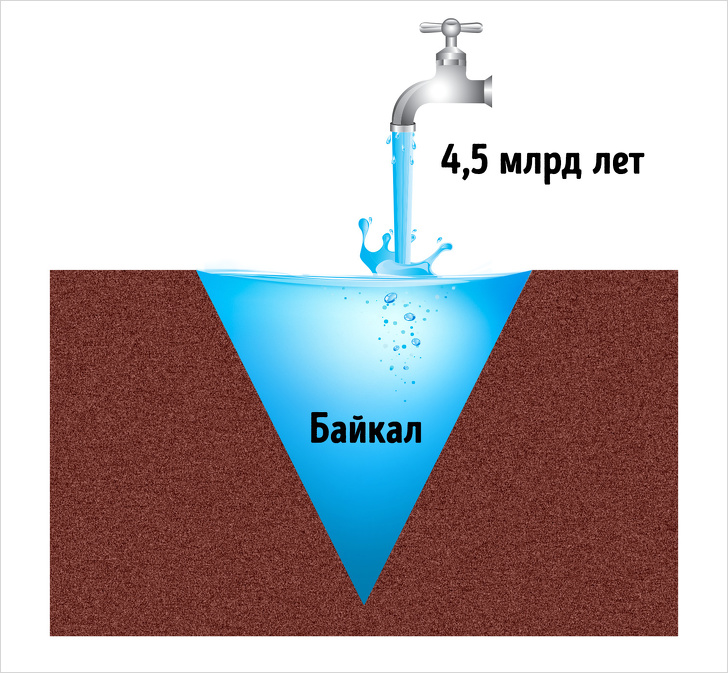 - Якщо кран буде відкрито лише 1,5 години, то набереться стільки води, скільки ви зможете випити за цілий рік (близько 1 кубометра). За добу з крана витече аж 140 повних ванн. Людині цього вистачить на 17 років. А тепер уявімо озеро Байкал і уявимо, що його наповнюють усі річки світу. У цифрах це 26 квадрильйонів літрів. Вашому домашньому крану не пощастило: він повинен працювати 4,5 млрд років, щоб впоратися з тим же завданням. Уявіть: якби вода почала витікати з такою швидкістю з Байкалу при першому дінозавра, то сьогодні на озері залишилося б ще 95 % води.