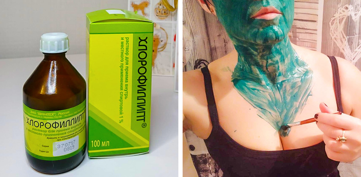 - 1 ст. л. білої глини розвести холодною водою до консистенції густої сметани. Додати 4 краплі хлорофіліпту і перемішати. Тримати на шкірі 15 хвилин, після змити і нанести зволожуючий крем.