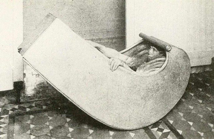 Ох і вигадники ці вікторіанці! Як вам така ванна-гойдалка? Що знаходиться всередині людина повинен був сам розхитувати цю посудину, створюючи хвилі. Вважалося, що такий гідромасаж дуже корисний для здоров'я.