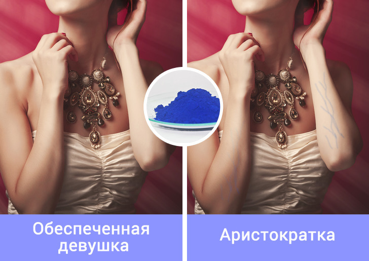 Особливо винахідливі модниці знайшли незвичайне застосування берлінської лазурі. Вони підфарбовували вени на руках синьою фарбою, підкреслюючи своє шляхетне походження, адже вважалося, що в аристократів блакитна кров.
