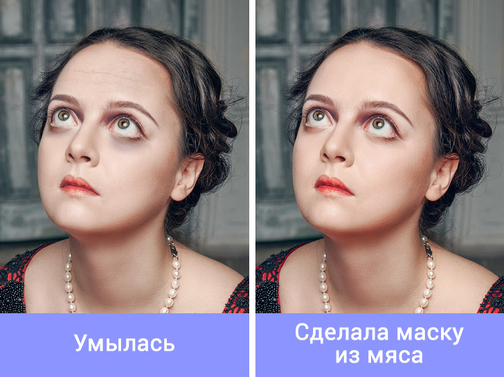 Одним з найбільш популярних косметичних засобів була сира яловичина. Дами робили маски з сала і кісткового мозку і відправлялися спати. Вважалося, що ця процедура надає обличчю свіжість і усуває зморшки.
