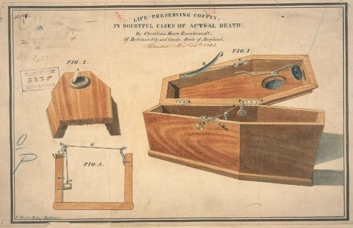 Мабуть, самої ексцентричної примхою вікторіанської епохи стали безпечні труни. Справа в тому, що лікарі не завжди могли відрізнити кому від смерті, і іноді «померлі» прокидалися на власних похоронах. Чи треба говорити, що люди боялися бути похованими живцем. Тому було придумано безліч варіантів трун, в яких раптово прокинувся чоловік міг дихати і подати знак наверх. Зазвичай на могилі встановлювали дзвін, мотузка від якого була прив'язана до руці мешканця могили. Також були популярні труни з віконцями, в які час від часу заглядав доглядач кладовища.