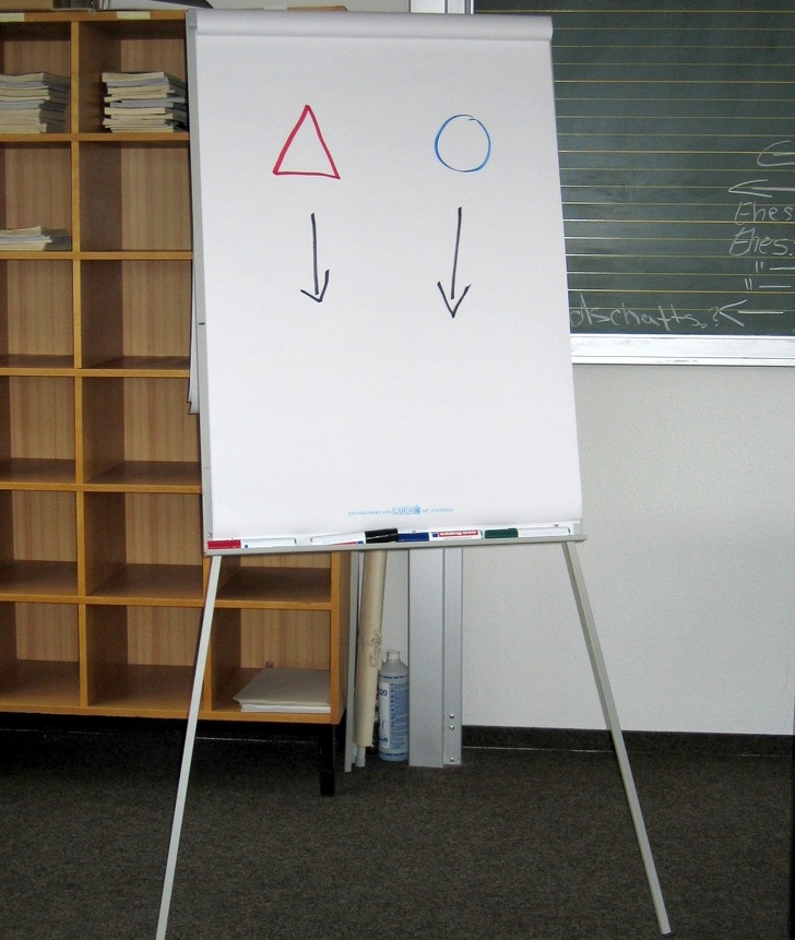 Ще одна знайома всім річ — це фліпчарт. Так називається магнітно-маркерна дошка, яка використовується в конференціях, офісних заходах і семінарах.