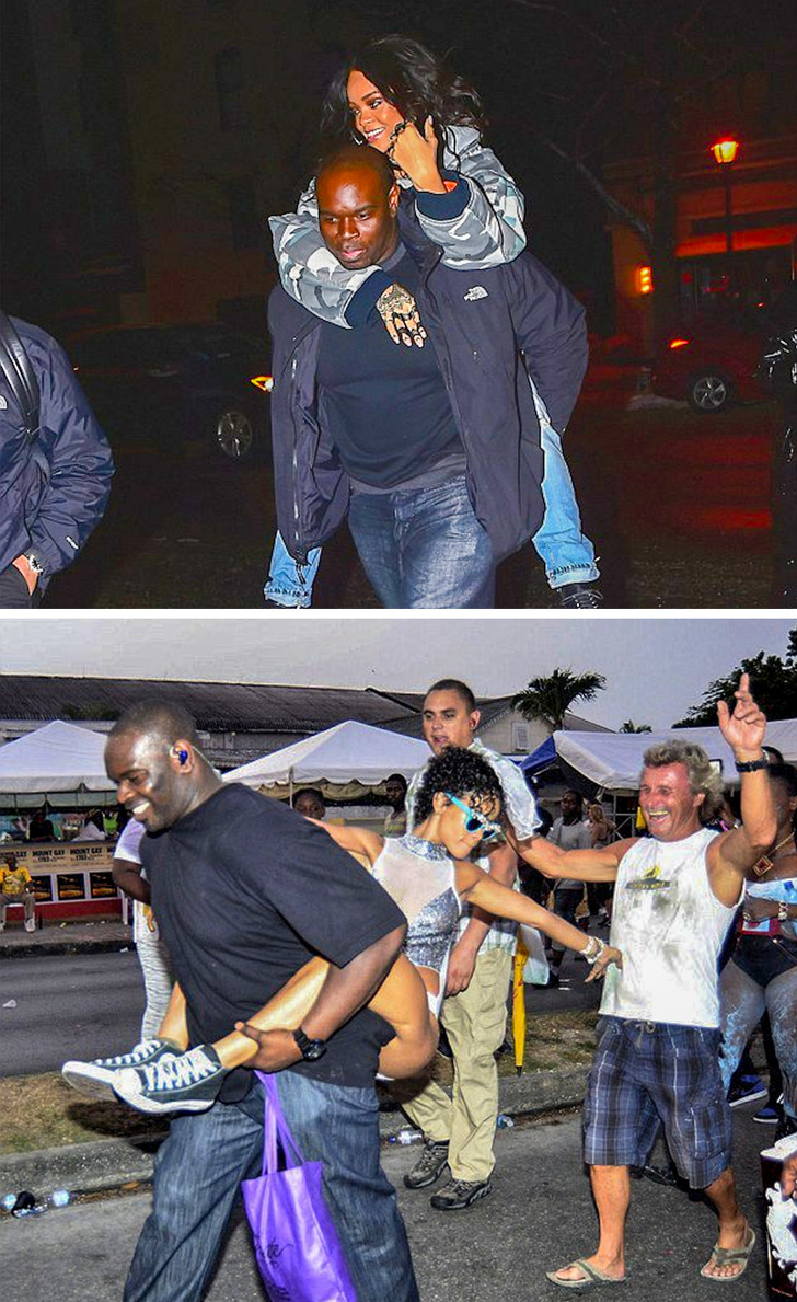 На офіційних заходах Ріанна присутній з 5 охоронцями в елегантних костюмах. У звичайні дні співачка воліє ходити з двома захисниками. Відомо, що у неї кілька неформальні і дружні відносини з охоронцями. Іноді вони носять зірку на руках, якщо йде сніг або співачка втомилася, а також садять її на плечі під час вечірок та концертів.