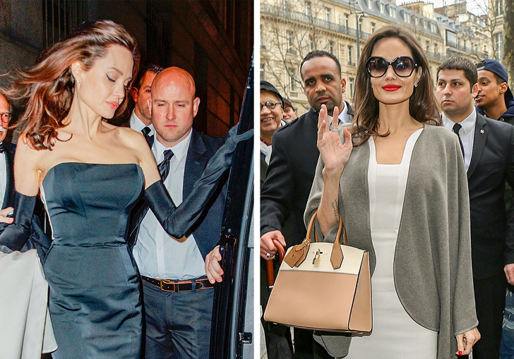 У зіркової мами шістьох дітей три охоронці. Тривалий час охороною дітей займався Марк Биллингхам, що став пізніше охоронцем Тома Круза. Через роки роботи охоронці настільки зблизилися з актрисою і її дітьми, що опинилися довіреними особами Джолі і великою підтримкою для неї під час розлучення з Бредом Піттом. Річна вартість охорони Джолі і її дітей обходиться в більш ніж $ 2 млн.